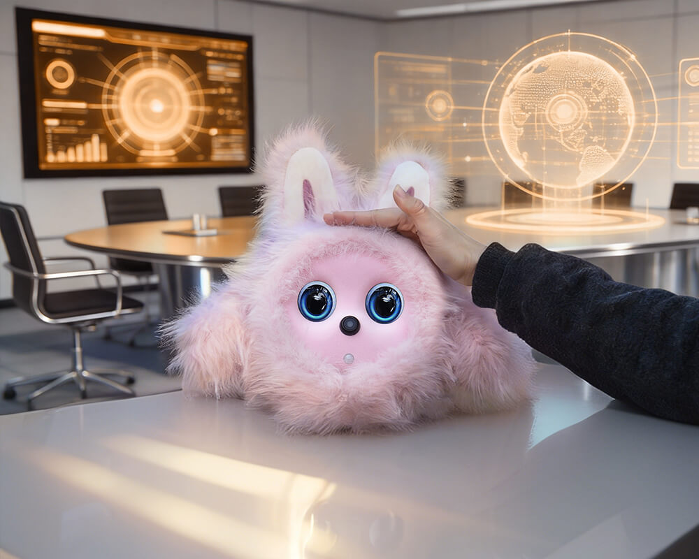 This desktop electronic pet features intelligent voice and touch interaction for
